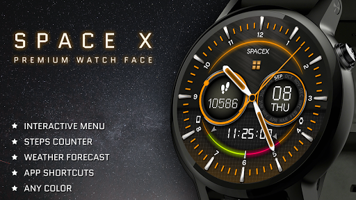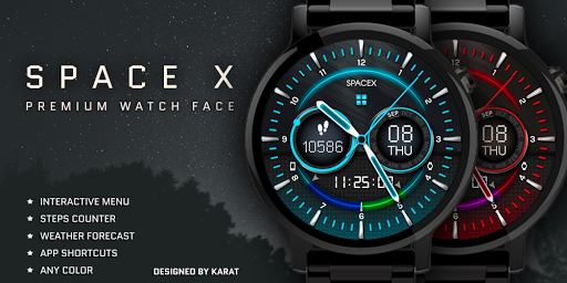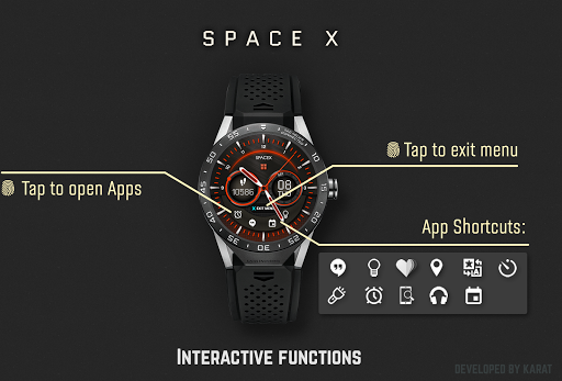 Space X is a modern and interactive watch face for Android Wear devices with App Shortcuts.