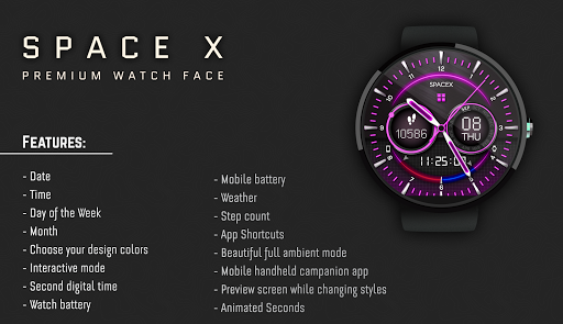 Space X - perfectly works on all Android Wear devices, get the fast and smooth experience with our watch faces.