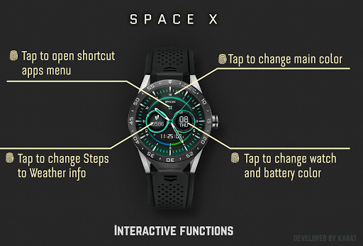 ★ Tap the Space X logo on watch face to change the colors randomly!