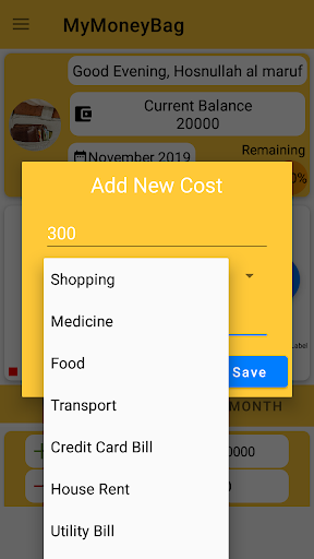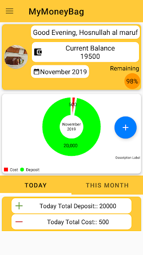 You can add today's deposit/ cost, then this app will calculate your remaining balance, show you today's all transaction, this month's all transaction. You can delete transaction. In the home screen you can see you current balance, remaining percentage of you wallet. You also can see/ delete previous months all transaction. Add deposit and cost with different types of category. You can also keep a note of your transaction.