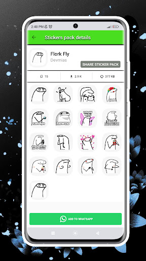 Welcome to the Flork Stickers for WhatsApp app! Are you a fan of memes, music, games, or just love? Then our collection of Flork stickers is perfect for you. Our app offers a wide variety of animated, fun, and loving stickers that will make your WhatsApp conversations more exciting.