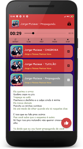 A aplicação das canções de Jorge & Mateus vem com lyrics em cada canção e esta aplicação pode funcionar fora de linha sem necessidade para o Internet