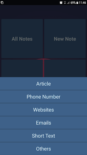 tools bar add a new note and translate current copied text , search for websites , numbers