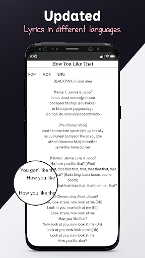 Blackpink Song: All Lyrics is an application that integrates the lyrics of Blackpink's complete songs with Latin, Korean, and English translations. You not only know the lyrics of Blackpink's hot hits songs, but you can also learn new languages through the lyrics. It's interesting, isn't it?