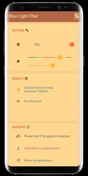 Screen Adjust is used to reduce blue light by adjusting the screen to natural color. Shifting your screen to night mode can relieve your eyes strain, and your eyes will feel at ease during night reading. Also blue light filter will protect your eyes and help you sleep easily.