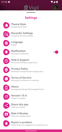 Vigil is developed by Devsig Technologies Pvt Ltd. The app is designed to provide the best mobile recording solutions and to help users capture footage discreetly and easily.