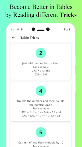 This app has multiplication tricks for the table from 2 to 20, you can also refer to these tricks to learn math tables 11 to 20. Math tables is a great way to help teach kids classic multiplication tables.