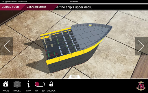Ship Structure is an educational mobile AR experience that teaches ship terminology using a robustly detailed and fully interactive 3D model. The application contains three experiences: