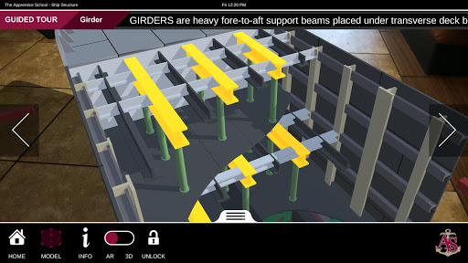 This application was developed at Newport News Shipbuilding, a division of Huntington Ingalls Industries, inc. as a learning tool for the Apprentice School Ship Construction course. However, this free app is an excellent tool for ANYONE that wants to learn about ship structure, or wants to experience augmented reality in a fun and educational context.