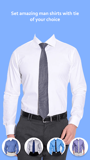 Man Shirt with Tie Photo Editor app helps you to virtually try out presentable Shirt with tie Man attires within seconds!