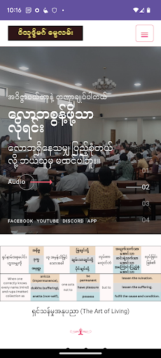 (ဖုန်းပိတ်ထားသော်လည်း တရားသံကို ဆက်တိုက်နားထောင်နိုင်ရန် Settings -> Apps -> Dhammalaan -> App Battery Usage -> Unrestricted ကို ရွေးချယ်ပေးထားပါ)