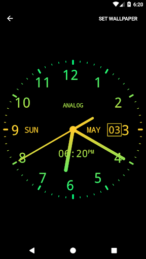 Live Clock Wallpaper application allows you to set Live Wallpaper. Clock displays Date, month and day of the week. There are two types of style for clocks : Solid color and gradient color style.