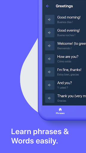 Learn Spanish Offline: Speak fluently: is an android app to learn Spanish phrases and words of various categories and from various base languages.