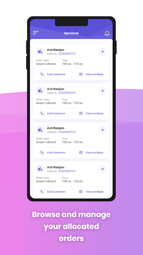 - Drive to the Pickup location , collect samples based on the details provided in the App and deliver at the Lab with real time temperature tracking.