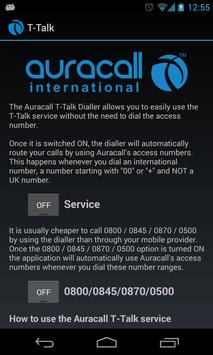 The Auracall T-Talk Dialler allows you to easily use the T-Talk service without the need to dial the access number.
