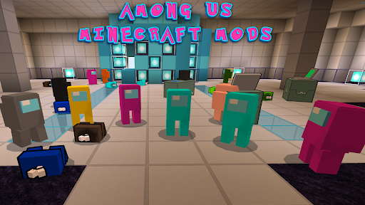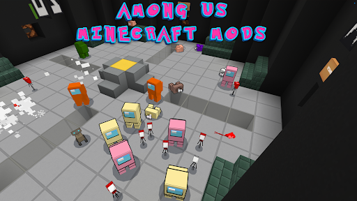There are crew members and imposters among us - they are very aggressive. Find and kill the imposter before he kills you in Minecraft PE. Suits provide a certain level of protection.