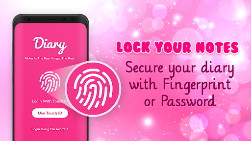 My diary with finger print lock is an online free diary for everyone. My diary app serves as a personal diary with (fingerprint & password). You can use it in maintaining a record of your upcoming events, important notes, a reminder for a meeting, your personal feelings & other confidential information, etc. Diary with finger print lock helps you in memorizing a lot of important things. Diary with lock is your best friend who keeps your secrets & never ditches you. My secret diary app is the best tool for writing & recording your secrets in life. Diary app with lock supports HD images, writing in different font sizes, variety of themes & stickers. All these elements make a diary app with lock more colorful & a mood turner app. Its colorful themes & stickers trigger positive emotions. These color notes in the note pad app add further glitter to the beauty of daily journal with lock. Diary, Journals, Note, Mood Tracker is highly secure due to the presence of both fingerprint lock system, passcode. It's up to the preference of the user which mode of lock he/she prefers. In case if you forget your password in Diary (with finger lock & password) you can reset it by answering certain security questions. You can now sync your diary book to Dropbox or Google drive. This cute diary app is part of the lifestyle category of the play store. My diary app is recommended for you to use in daily routine.