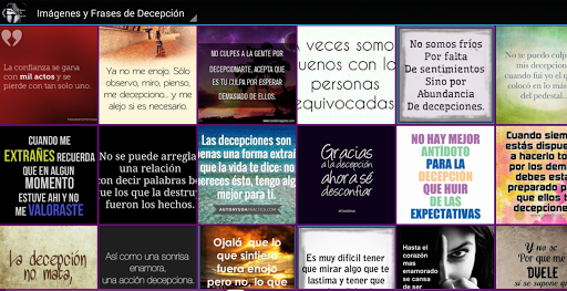 Contamos con las mejores Imágenes con Frases de Decepción para que los puedas compartir con las personas que te decepcionaron o para que las puedas compartir por las redes sociales y le demuestres a tus amigos como te sientes. Estas son algunas de las características de la Aplicación: