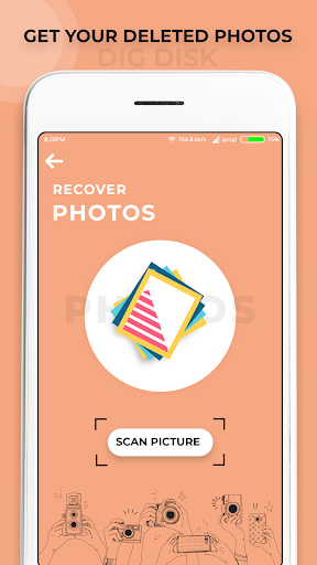 DigDisk Photo Recovery will scan all your phone storage looking for deleted photos and list them in an easy restore imagemanner that will help you to restore them back to your phone storage.