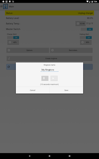 • Helps prevent over and under charging with custom percent level for charge battery notification and custom percent level for unplug charger notification