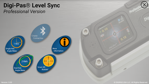Digi-Pas® Mobile App is a user-friendly app, easily installed in any compatible smartphones or tablets. Users can fully utilize the remote wireless Bluetooth mobile connectivity to various Digi-Pas® 2-axis precision digital levelling devices. This highly affordable app instantly empowers machine installers to perform remote 2-Axis simultaneous levelling task, angle measurement and 2D concurrent alignment activities with speed, precision and as a 'one-man-operation' that traditional single-axis digital or 'bubble' levels are unable to match.