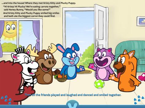 Lead Honey Bunny on this interactive adventure as she takes her basket of carrots from the plains to the forest sharing them with friends like Marco the Moose, Barry Bear, Zip the Zebra, Kristy Kitty, and Plucky Puppy.
