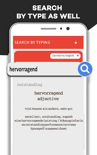 Voice Dictionary English to German has got strong suggestion base search and spell checking algorithm, which make your search faster and accurate with voice input.