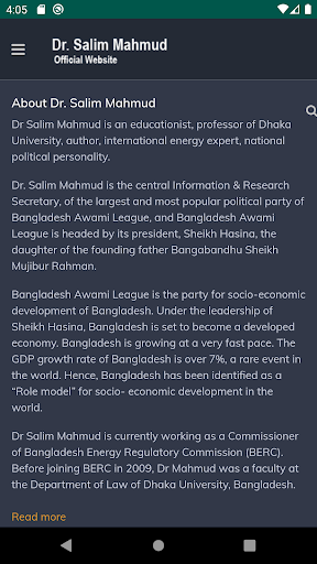 Dr. Salim Mahmud is the central Information & Research Secretary, of the largest and most popular political party of Bangladesh Awami League, and Bangladesh Awami League is headed by its president, Sheikh Hasina, the daughter of the founding father Bangabandhu Sheikh Mujibur Rahman.