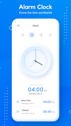 select custome alaram tone for waking, simple clock , digital clock, world clock, stop watch.