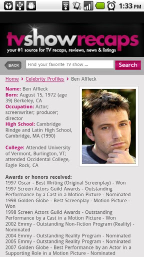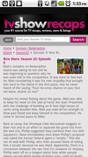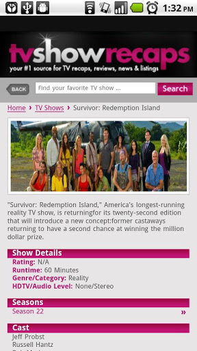 Your source for TV recaps, reviews, celebrity biographies, fun facts and more.Now you can track your favorite television shows and actors so that you never miss a show:Daily updates for your favorite tv shows Featured shows lets you review the most popular shows at a glanceFeatured Show categories include: Action, Comedy, Drama, Reality, and science fiction Read celebrity profiles of your favorite actors and actressesTV insides gives you the early scoop on what39;s coming up in new showssearch topics by actor, TV show, or category