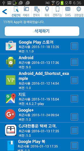 - 현재 핸드폰에 설치 되어있는 어플리케이션 정보보기 기능 제공
