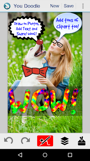 You Doodle is the best app on Android to create art and draw on photos and draw on pictures. Doodling on a friend, or marking up a picture or adding text has never been easier. With it's powerful text tool and simple brush tool, you can draw on photos and add text quickly and easily.