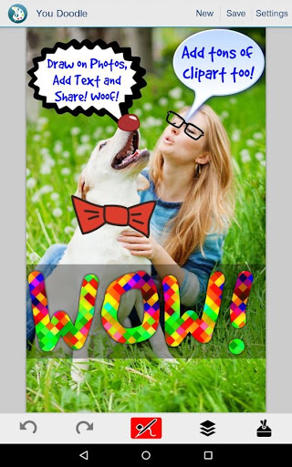 You Doodle is the best app on Android to create art and draw on photos and draw on pictures. Doodling on a friend, or marking up a picture or adding text has never been easier. With it's powerful text tool and simple brush tool, you can draw on photos and add text quickly and easily.