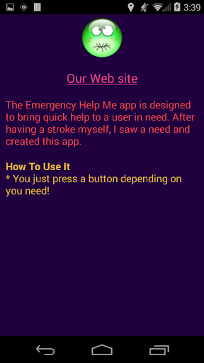 Emergency Help Me call or text was written after having a stroke myself. I saw the need for simple application where the person in emergency could press a button and call and/or text for help.