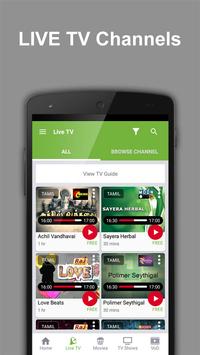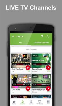 This application provides you to watch live Tamil TV channels. It contains all popular channels with entertainment programs. This app is a one stop destination for all your Tamil Hit songs and Videos on you mobile whenever and wherever you want.