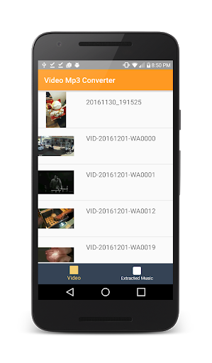 The Video to Music Converter application will scan the memory card and will list of files that can be converted to music file format.