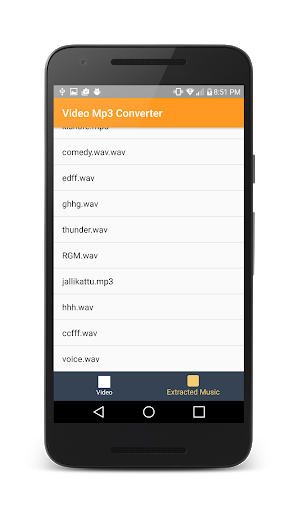The Application also supports FLV,WMV and other popular formats for Audio extraction process.Based on the video file size the video converter will take time. All the video files are stored in the memory card in the folder named videotomusic.