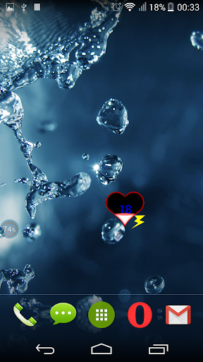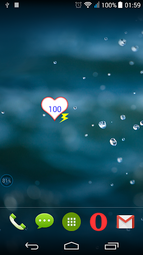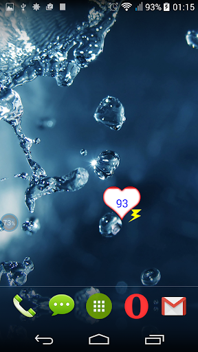 Heart Battery is an simple battery indicator. It shows battery level in percentage. The level of fluid inside the heart is also showing the battery level.