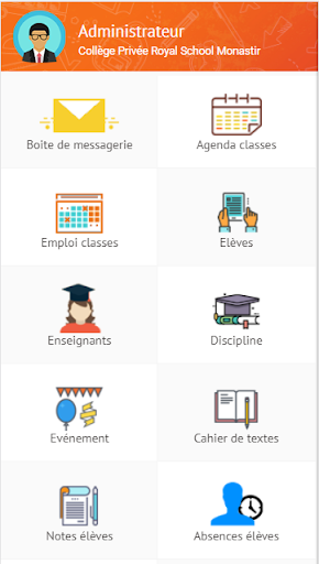 permet à l'employé responsable de l’école d’insérer les actualités, emploi du temps, devoirs à faire, dates examens, Notes, Disciplines, messageries, paiements, événements.