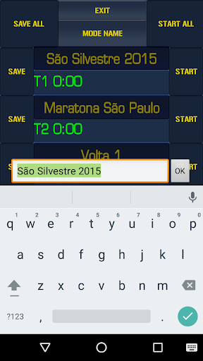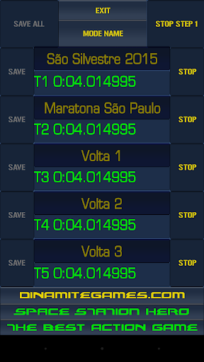 START / STOP de cada cronômetro, podendo o resultado ser salvo caso o usuário julgue necessário pelo botão SAVE.