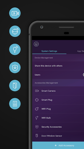 This App can manage all our official security accessories like Contact Sensors, Motion Sensors (pet-immune optional), Remote Controllers, CO Sensors, Gas Sensors, Smoke Detectors etc. It also works with Smart Cameras and Smart Plugs, which allow users to watch live video or recorded files, or turn ON/OFF the home appliances remotely. With built-in guidelines, users can run the system quickly even without a manual, including daily operations and professional settings.