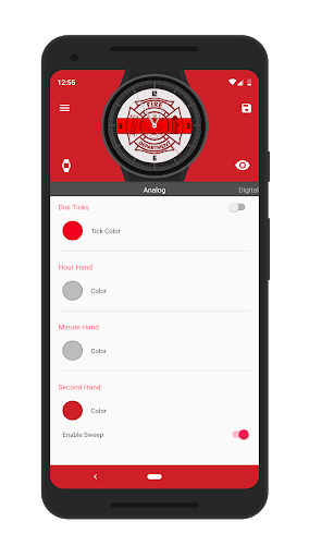 Red Line watchface with options for color accents. The companion app inside android wear lets you customize and preview.