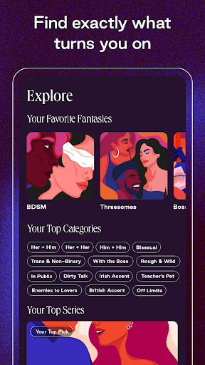 Whether you’re just starting to explore, or know exactly what you like, discover personal recommendations that make the app your own private world. Straight, queer, and genderqueer storylines. Romantic meet cutes, or BDSM and off-limits adventures. American, British, Irish, and Australian accents. 50% of audio is voiced by people of color.