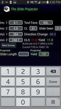 This is a directional drilling survey program that you will be able to calculate toolface orientation, dogleg severity, motor yield, and build rate by inputting the inclination, azimuth, course length and slide seen from your survey. You can also click on the TVD and input target TVD and target inclination, in order to calculate the build rate needed to land the curve. You may enter a projected slide length to see what a slide will give you at the current motor yield, or enter a projected yield to see what the current slide will give you at a different yield rate. You can change the toolface orientation to see what the slide ought to give, or plug in your desired inclination and azimuth and it will tell you what you should slide.