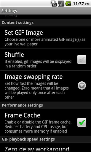 * Consumes very little power and CPU, thanks to a custom built, highly optimized native GIF-decoder library