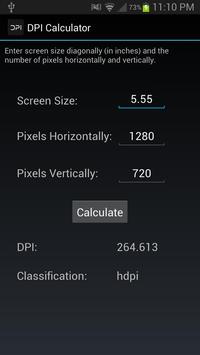 Input your device's screen size and pixel dimensions, hit the calculate button, and get the DPI and classification (ldpi, mdpi, etc...).