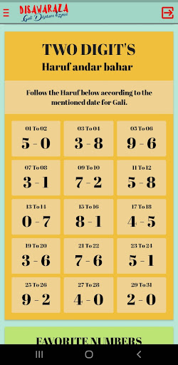 The Disawaraza app will always keep you updated with the latest Satta results for Gali Satta, VIP Gali, Disawar, Disawar Night, Faridabad, Gaziabad, Tezpur Morning, Tezpur Day, Tezpur Evening, and Tezpur Night games.