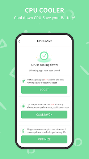 ☆ CPU Cooler can cool down your android phone CPU temperature with one tap.