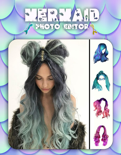 - In Mermaid Photo Editor you can change hairstyle and try colored hair: pink hair, blue hair, purple hair, rainbow hair!