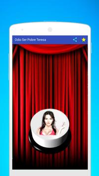 Odio ser pobre botón, consiste en una entretenida aplicación gracias a la cual podrás escuchar el sonido de la voz de Teresa diciendo, Odio ser pobre! lo Odio!, dicha frase se volvió muy popular debido al tono en el que lo dice la actriz que es muy cómico, por la popularidad de la novela y porque es una frase que se usó en innumerables memes y videos, los cuales al ser compartidos en redes sociales como facebook, instagram, twitter, hizieron que la frase se viralice y ahora es reconocida por millones de personas.🙁
